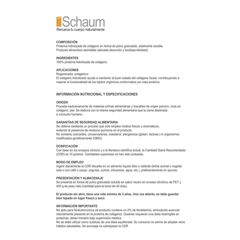 - Colágeno Hidrolizado 100% puro. Sabor natural. Mejor disolución.