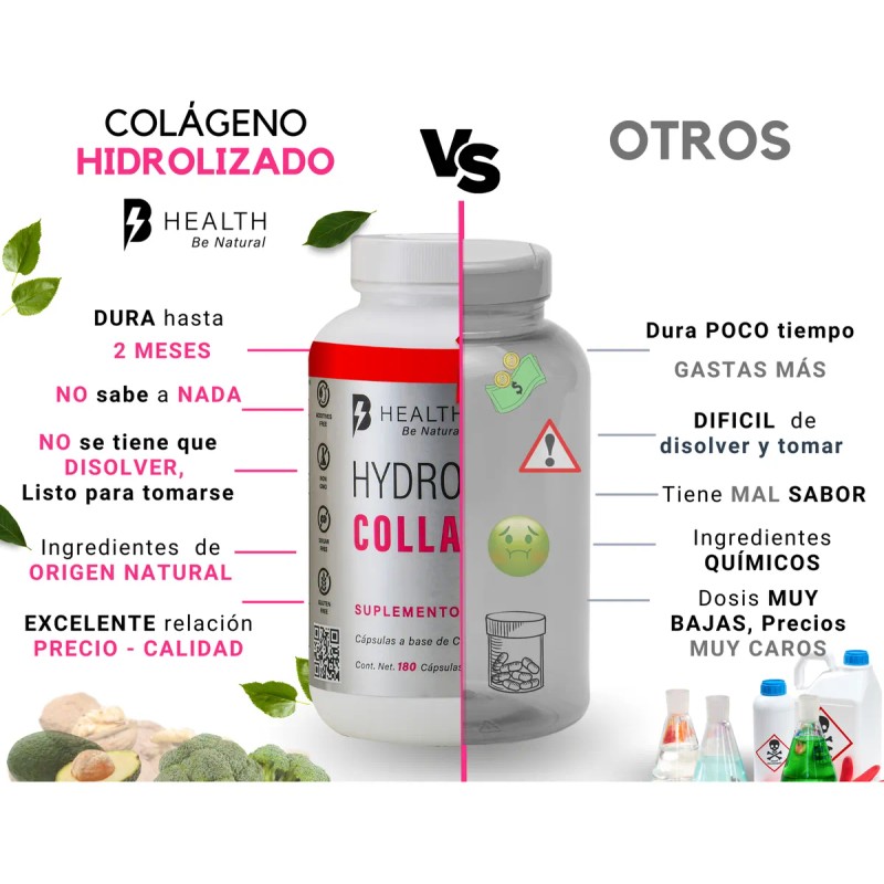 * MEZCLA PERFECTA! ¿Por qué usar B health? Nuestra fórmula además de tener Colágeno hidrolizado, contiene también Vitamina C para tener una mejor abosorción y para aportar Antioxidantes. También contiene Ácido Hialurónico para ayudar a la hidratación y elasticidad de la piel. Te sentirás mejor por fuera y por dentro! Belleza Total!