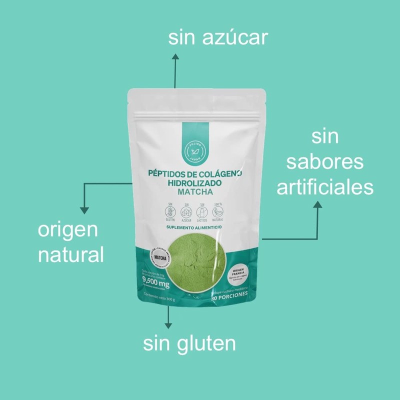 - 🍵 Péptidos de Colágeno origen laboratorio de Francia, producto patentado. Matcha Orgánico origen Japón. Hecho de materiales puros.