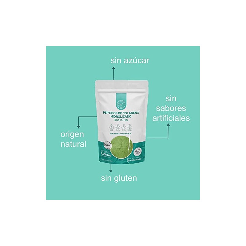 - 🍵 Cada dósis con: Colágeno Hidrolizado en polvo ( Péptidos Bioactivos de Colágeno), té verde Matcha ( consulte la tabla nutrimental )