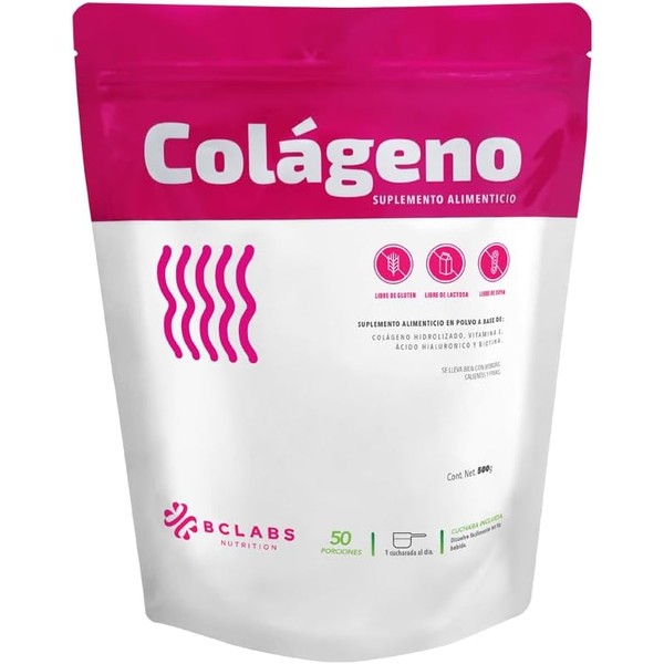 Colágeno Hidrolizado con Vitamina E, Ácido Hialuronico y Biotina, 500g. BC LABS. Libre de Gluten, Libre de Lactosa. Sin sabor