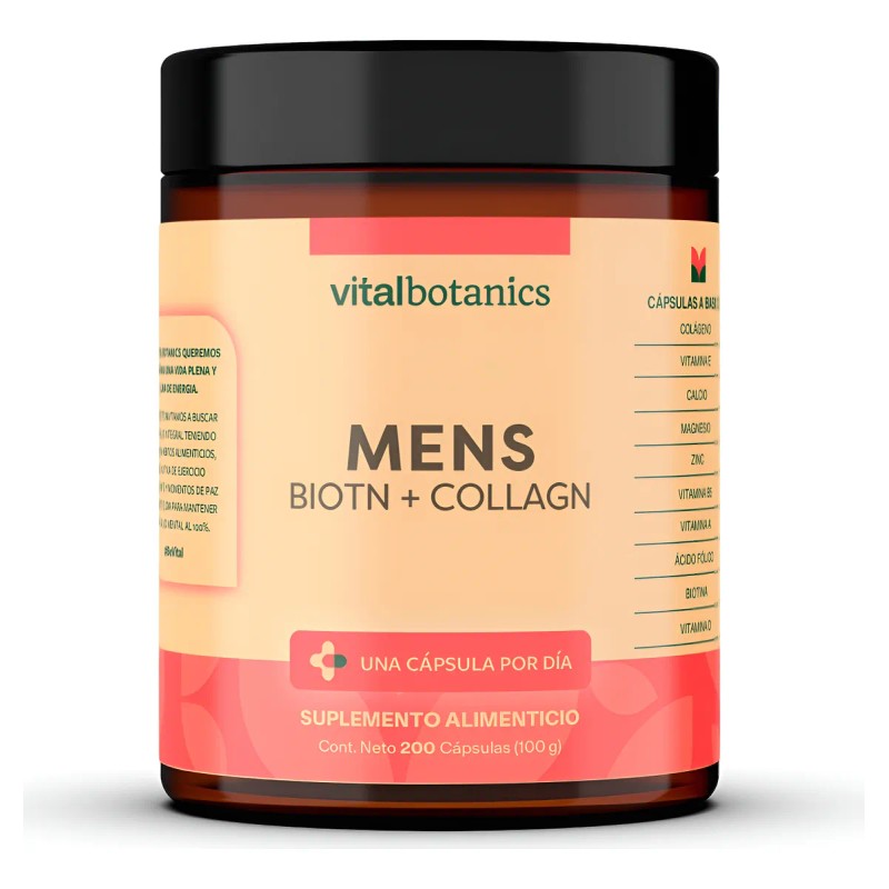 Este suplemento de VitalBotanics, formulado especialmente para hombres, contiene 200 cápsulas de colágeno hidrolizado de alta absorción, ideal para promover un estilo de vida activo, apoyar la recuperación muscular y mejorar la salud articular.
