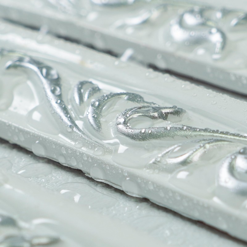 Model Description: Large subway tile design, luxury Silver Grey Limestone imitation with rough texture. Light gray color with shining speckles, refreshing your home with a simple but elegant wall.