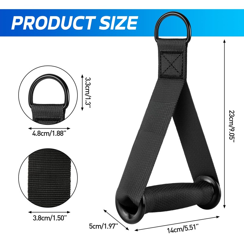 - 【Features】: The cable machine attachment handles is made of strong nylon rope webbing, with a width of 3.8cm/1.50inch, good flexibility, not easy to wrinkle, and stronger to use. The metal D buckle is made of stainless steel, welded on the lap head, the handle is long and has a wilting pattern, the diamond shaped square is elastic, soft, beautiful, and the luster is good.