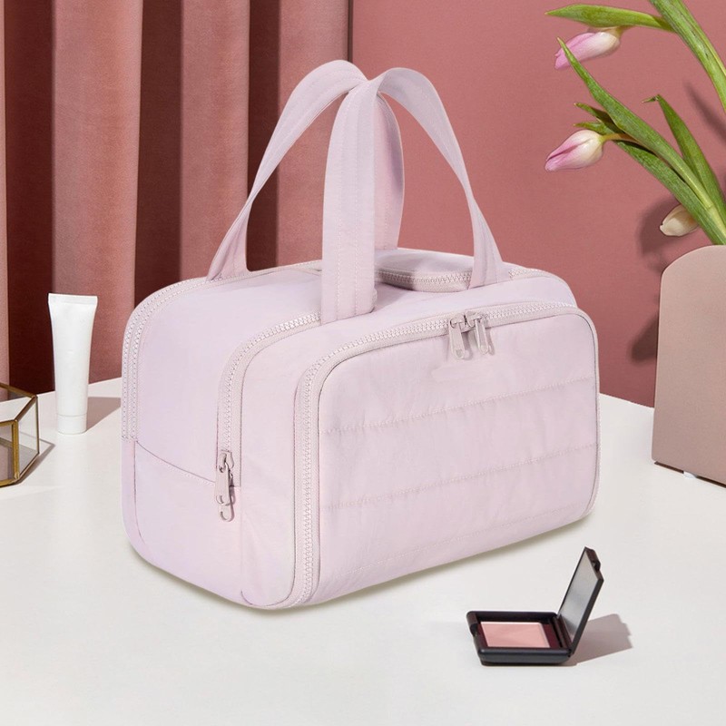 - 【Organized Storage】: The bag features elastic pockets that allow you to organize your toiletries and makeup items efficiently. It also includes zippered compartments for additional storage and safekeeping of your items