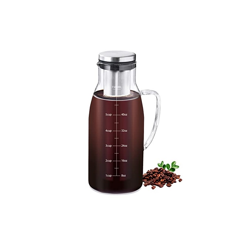 Cold Brew Coffee Maker,1500ml/51oz Iced coffee maker with Airtight Lid and Removable Stainless Steel Filter, Iced Tea maker,Glass Pitcher