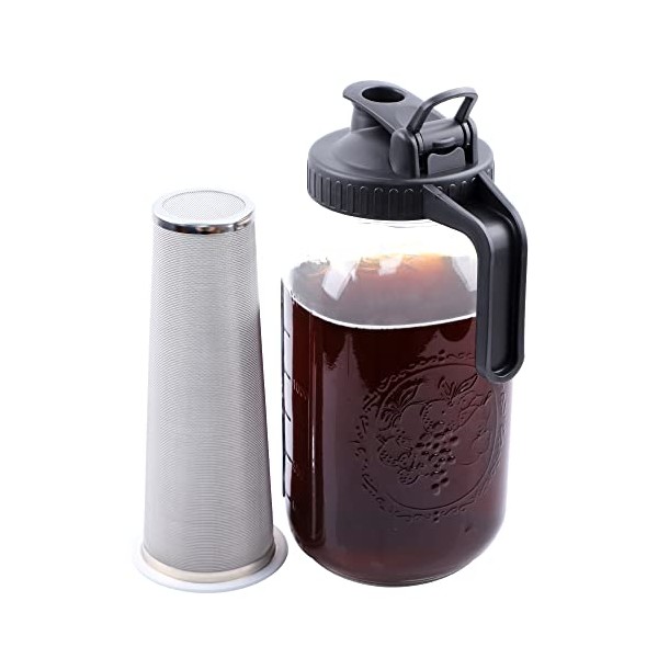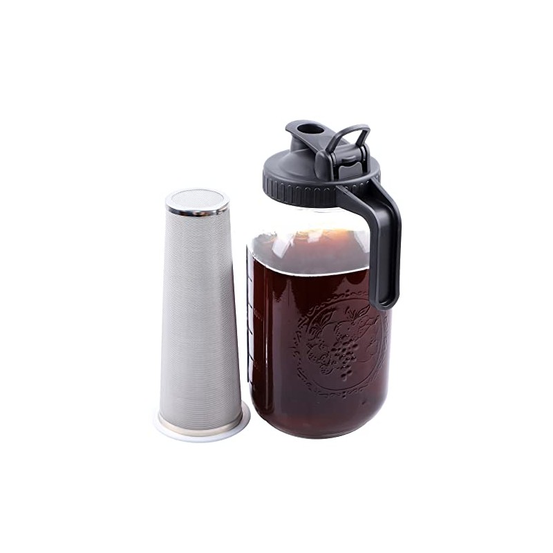 - 🍹Leak Proof & Airtight Storage : The 64 oz cold brew coffee maker mason jar with silicone seal in the pour spout lid will provide the best air tight. Leak proof and keep your drinking like cold brew coffee, Iced Tea fresh and tasty for much longer.