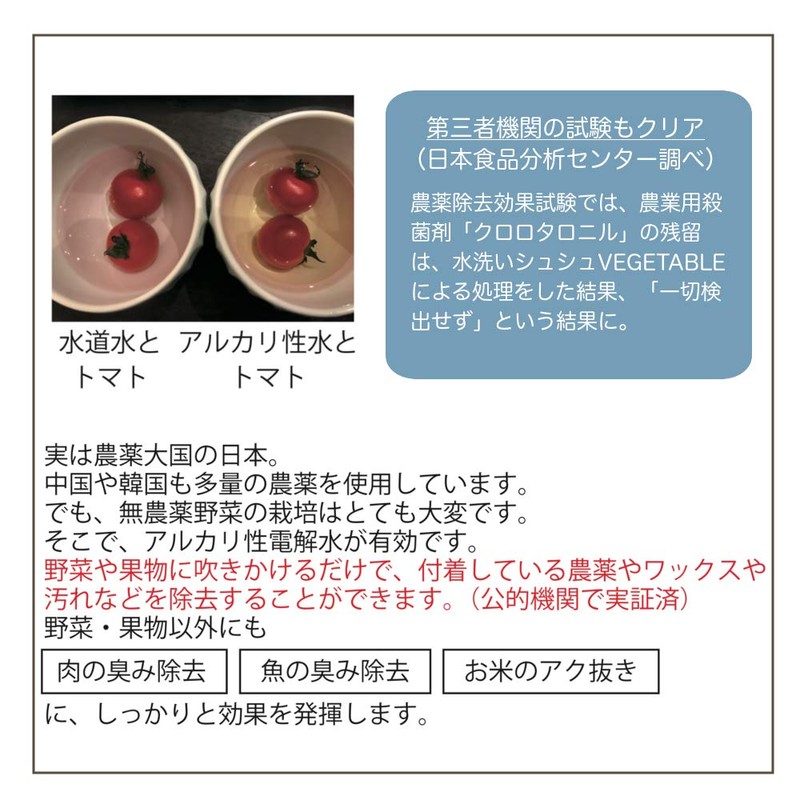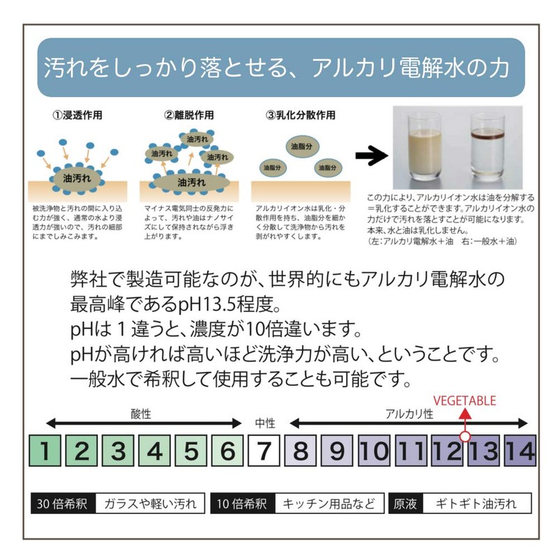 - Ingredients: Alkaline electrolytic water (about pH 12-12.5)