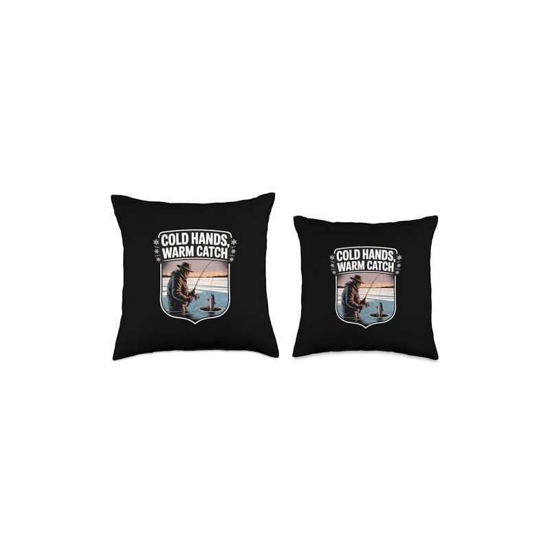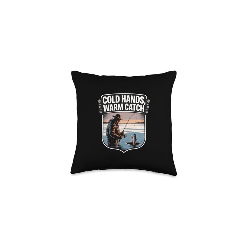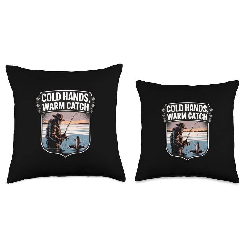 Cold Hands Warm Catch Ice Fishing Design Throw Pillow
