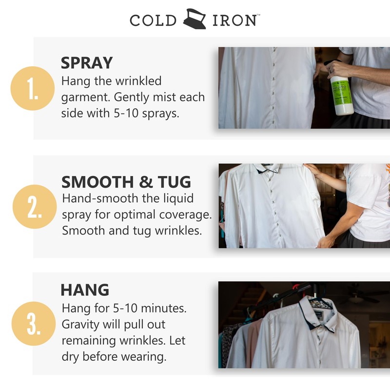- THE ORIGINAL: Cold Iron is the original plant-based wrinkle release spray. Since 2012 Cold Iron has saved millions of ironing jobs, that’s millions of hours!