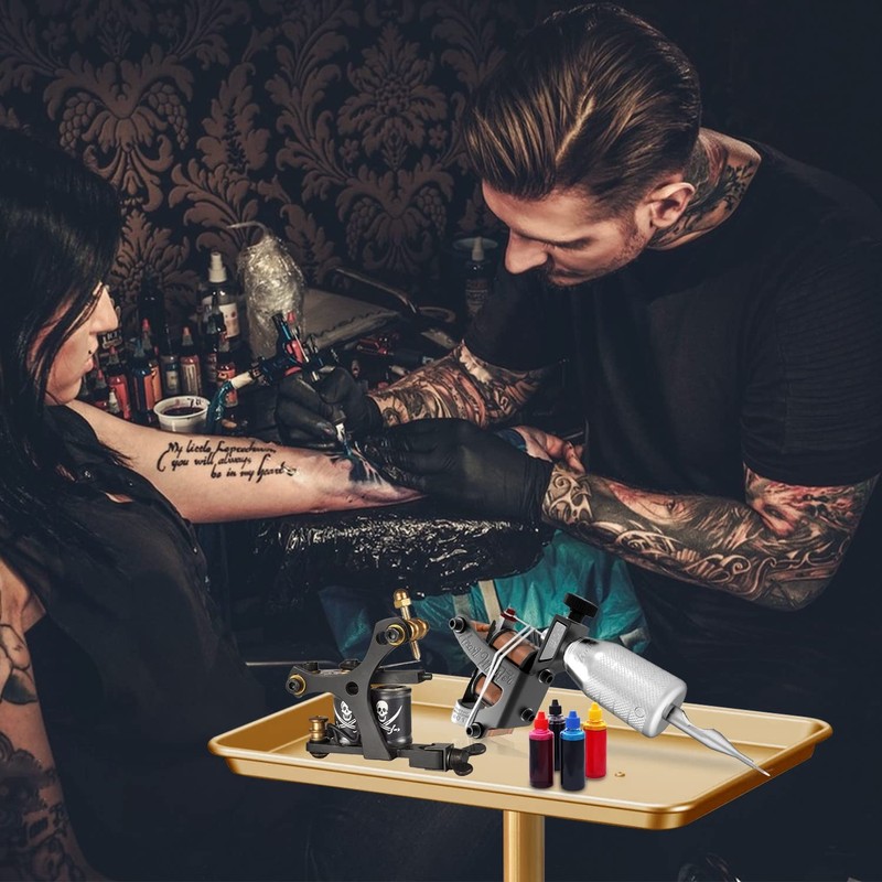 Chetunju Colden Salon Tray, Salon Rolling Tray Cart with Wheels, Tattoo Tray Adjustable Color Tray(Gold)