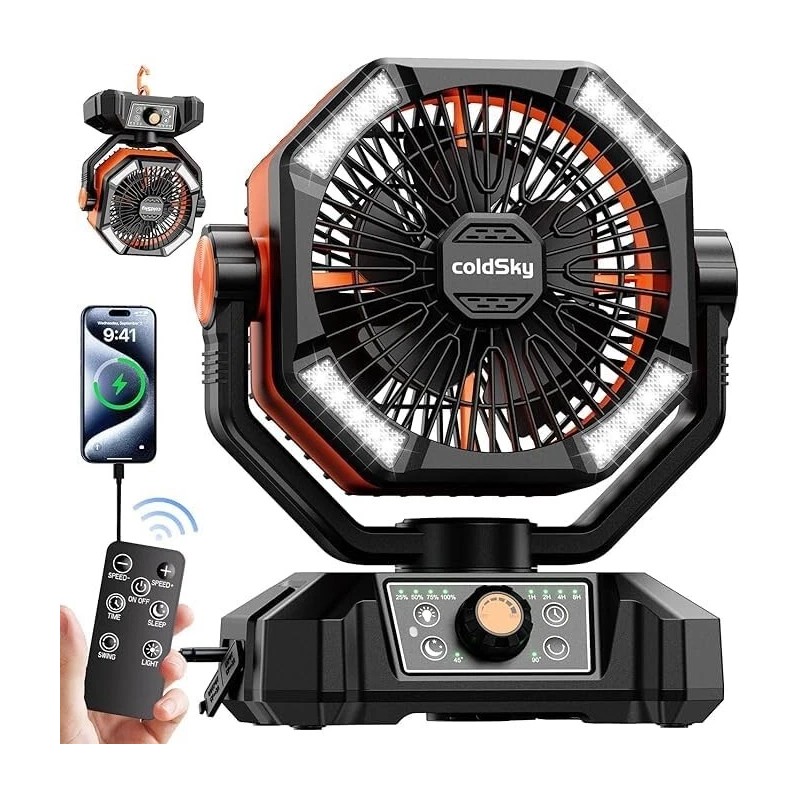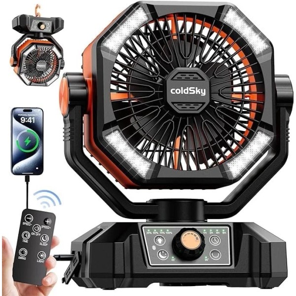 coldSky Camping fan, 20000mAh 48 hour rechargeable portable with LED light