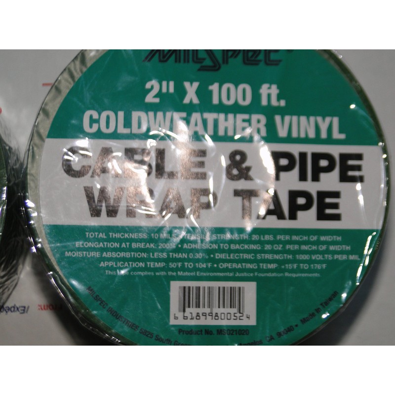 COLDWEATHER VINYL CABLE & PIPE WRAP TAPE 10 MILS 2" x 100ft. GREEN(1 ROLL)