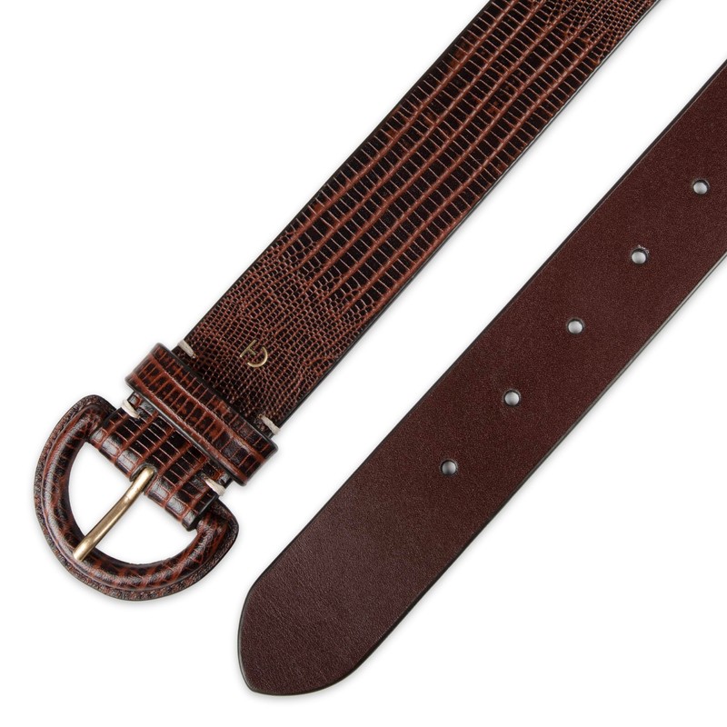 Cole Haan Women's Leather Wrapped Buckle Lizard Emboss Belt, Brown, Small
