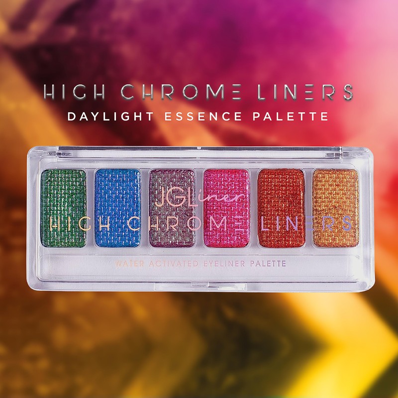 ¡Lleva tu delineado al siguiente nivel con High Chrome Liners! Incluye 6 tonos de delineador quese activa con agua efecto multicrómatico, brillan increíble y el tono cambia según el angúlo en que les de la luz.