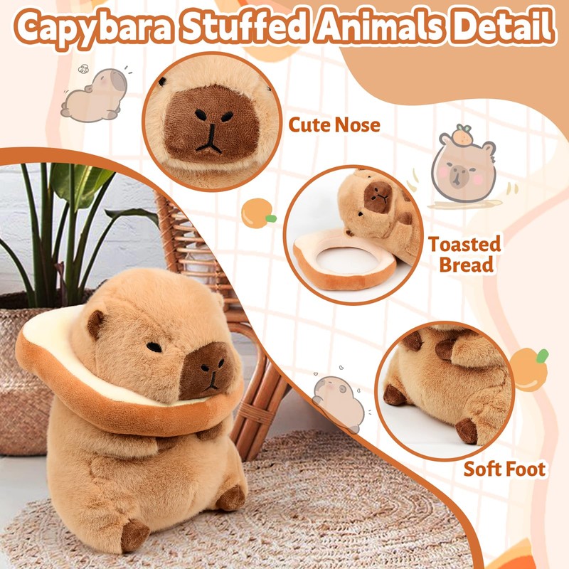 - 🐻【Capybara Bread Plush Toy】These cute capybara bread plush toys are made of high quality plush and PP cotton, making the doll soft and smooth, fluffy, with strong resilience, and not easy to deform. Soft and cozy to touch, giving you a soft and warm feeling. Harmless to children, safe and durable. Easy to clean, daily wipe maintenance can be.