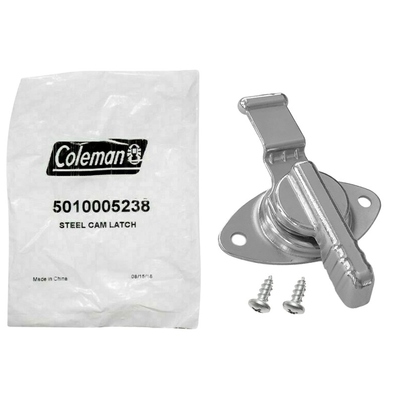 - 1 replacement cam latch & 2 screws included. Coleman part #5010005238.