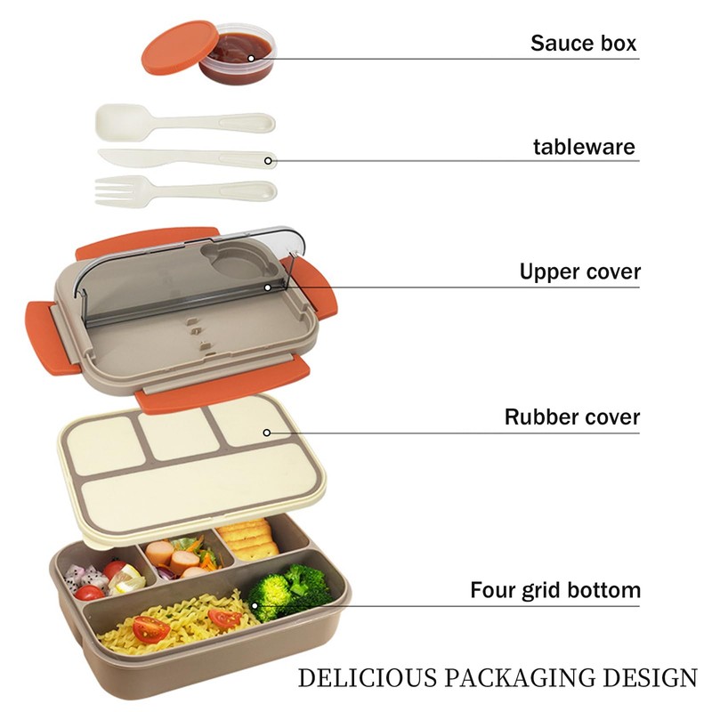 - Stackable lunch box with 4 compartments: this lunch box with independent compartments is used to serve main dish, fruit, snacks or sauce separately. In addition, we also provide you with a knife, fork and spoon. you can take a complete meal in just one container.