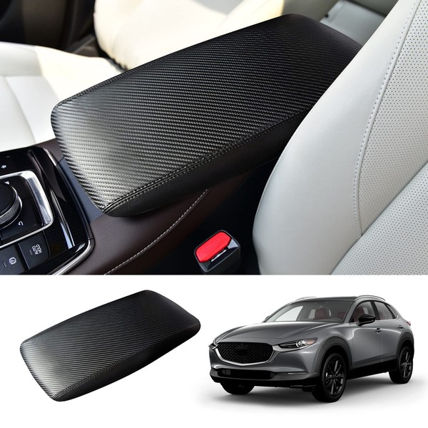 Coleya 2020-2023 2024 2025 Center Console Cover for Mazda CX-30, Waterproof&Scratch-Resistant Lether 2025 CX30 Console Armrest Cover for 2025 2024 Mazda CX30 Accessories (Black-Carbon Fiber)