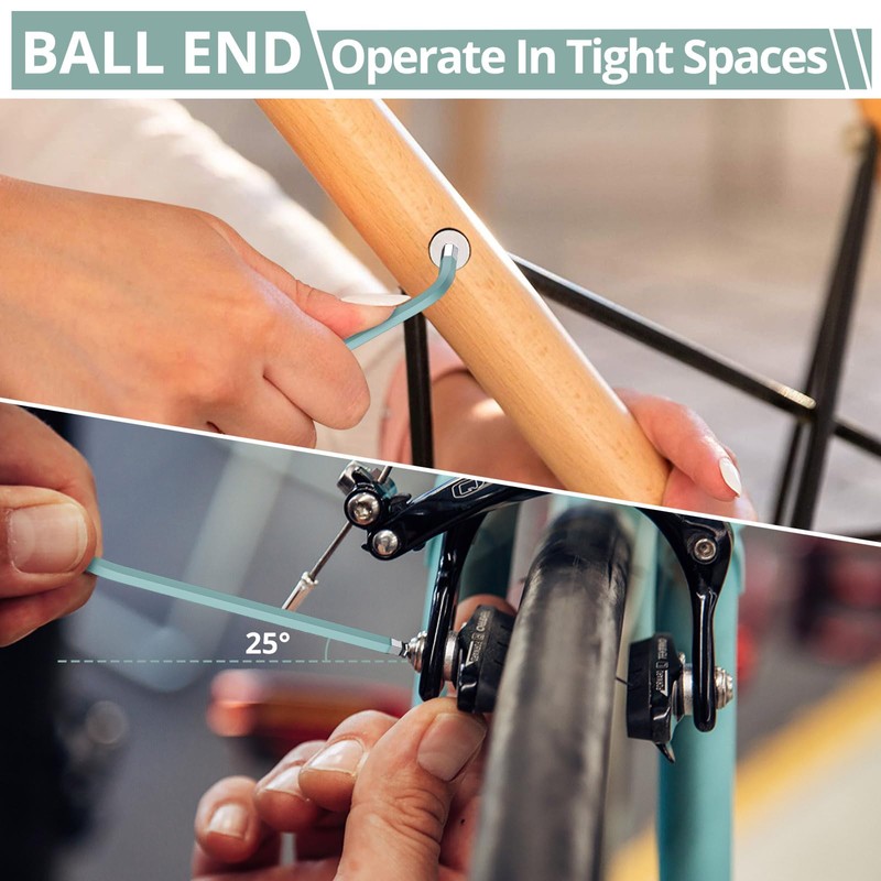 - 【Flat Head & Ball Head Design】The Alan Keys Sets Flat Head Design is Provide Greater Contact Area and Greater Torque, Which Can Save More Effort in the Process of Use;And the Ball End Design Entry Angle Up to 25 Degrees, Easy to Work in Narrow Space.