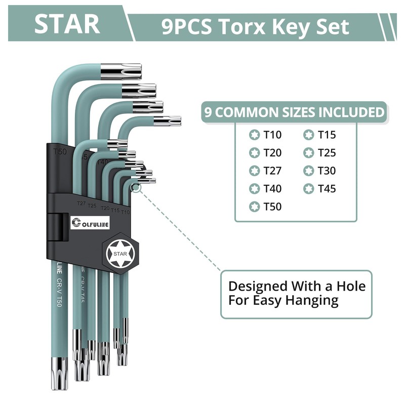 - 【Sturdy & Durable 】COLFULINE 6PCS Star Allen Keys are Made of Premium Chrome Vanadium Alloy Steel (CR-V) and 3PCS of the Smallest Size Torx Allen Keys are Made of S2 Alloy Steel, It is Hardness and Will Not Deform or Break.