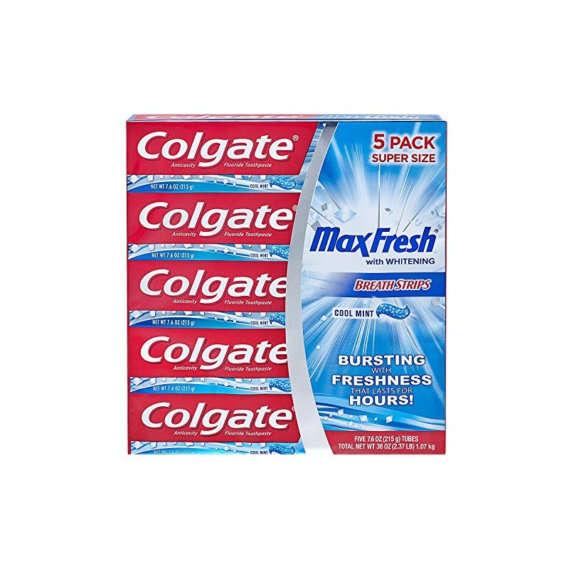 Breathe confidently with this unique formula, packed with hundreds of mini breath strips. This toothpaste unleashes a powerful rush of freshness for long-lasting fresh breath. Colgate MaxFresh Cool Mint invigorates your brushing experience and leaves your breath feeling fresh for hours. Plus, it fights cavities and whitens teeth, leaving you with a healthy smile.