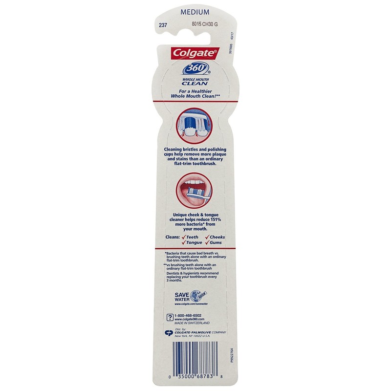 Colgate 360° Toothbrush with Tongue and Cheek Cleaner, Medium - 2 Count