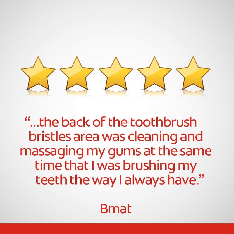 - Toothbrush reduces 151% more bacteria (bacteria that cause bad breath vs. brushing teeth alone with an ordinary flat trim toothbrush)