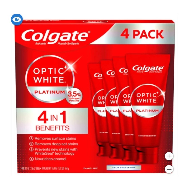 Colgate [4 VALUE PACK] Colgate Optic White Platinum Teeth Whitening Toothpaste, 4.1 oz