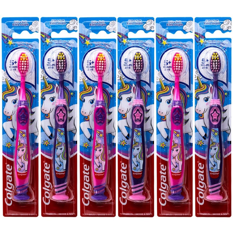 Colgate Kids Unicorn Battery Powered Toothbrush, Extra Soft for Children 5+ Years Old - Pack of 6