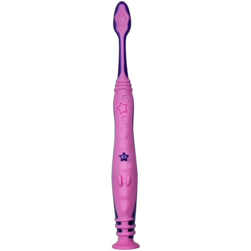 - Unique soft tongue cleaner on back of the head to encourage good oral care habits early on