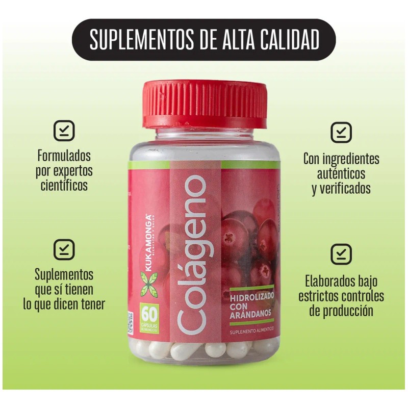 Kukamonga - Colágeno con Arándano | 60 Cápsulas | Reafirma la Piel | Fortalece Uñas y Cabello | Apoya la Salud Articular | Potente Antioxidante | Contribuye a la Hidratación y Elasticidad de la Piel | Kukamonga. 💯 Autenticidad y máxima durabilidad comprobadas. Construcción robusta y atención al detalle. 🔥 Alta demanda - Stock limitado. Ideal para quienes buscan lo mejor en calidad y estilo. Producto auténtico con satisfacción total asegurada. ¡No te quedes sin el tuyo y aprovecha esta oportunidad única!