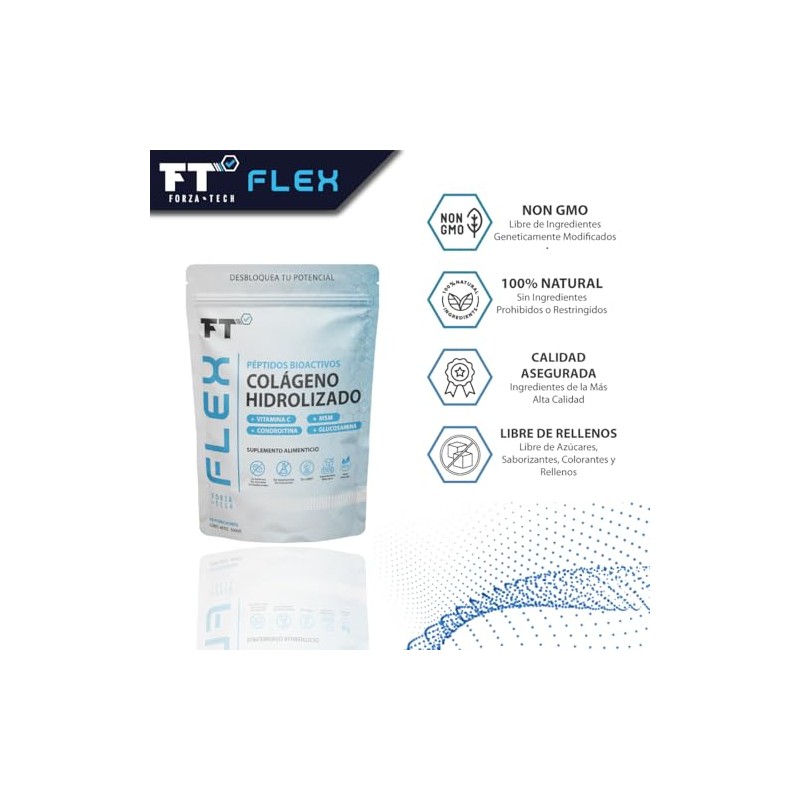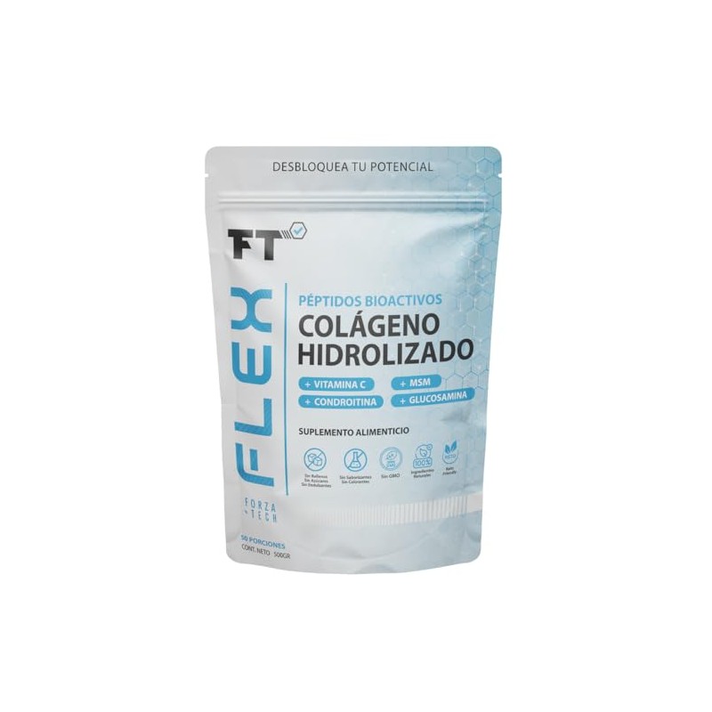 Colágeno Hidrolizado + Vitamina C + Glucosamina + Condroitina + MSM Suplemento Alimenticio FT FLEX Salud Articular