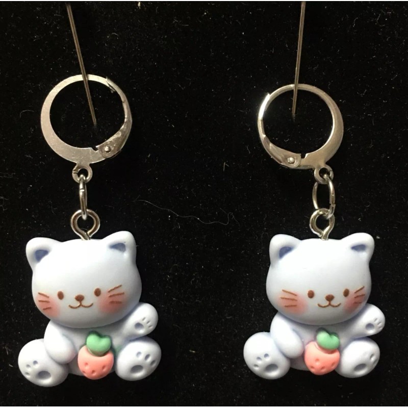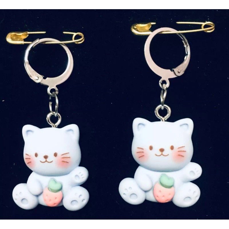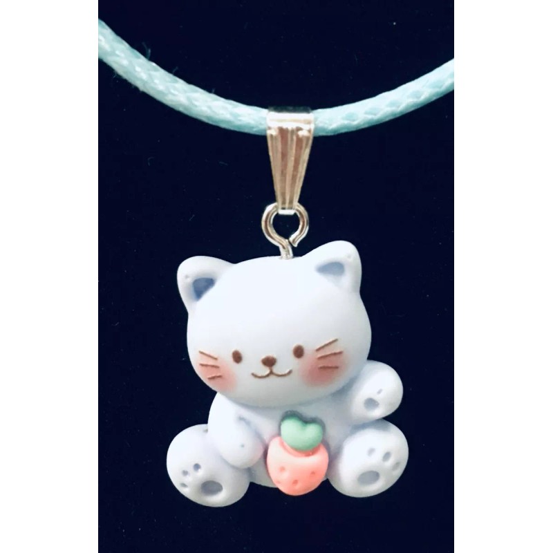 COLIBRI ALEGRE Collar Y Aretes De Gatitos Azules Con Fresa