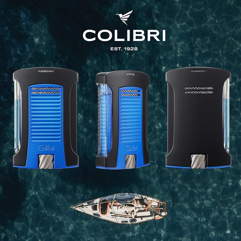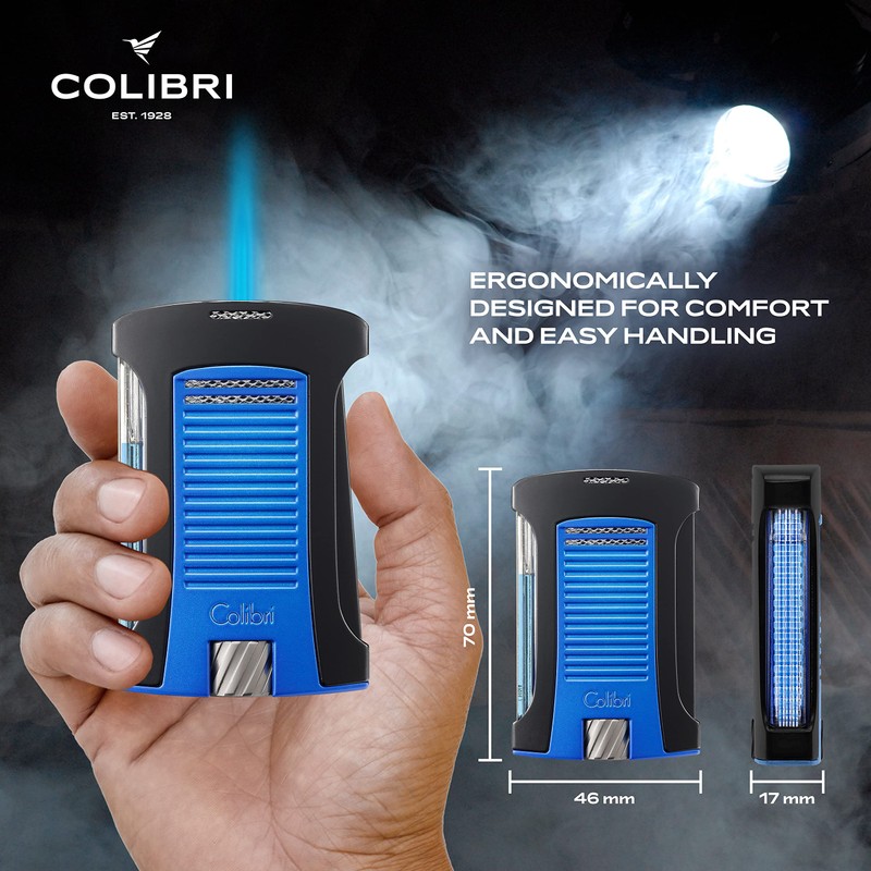 Colibri Daytona Windproof Butane Torch Lighter: Adjustable Flame, Refillable Single-Jet Cigar Lighter, Ergonomic Design with Fuel Window (Matte Blue)