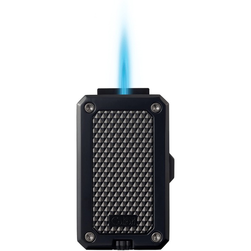 Colibri Rally Single Jet Flame Butane Lighter, Windproof & Refillable, Cigar Enthusiast's Choice with Blue Fuel Window and Adjustable Flame (Matte Black & Blue)
