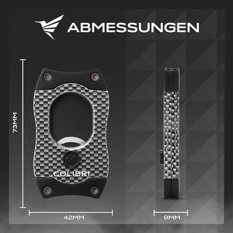 Colibri S-Cut Cigar Cutter - Carbon Fibre Pattern - Classic Straight Cut - Up to 66 Ring Sizer Cigars - Non-Stick Coating - Spring Loaded Release Mechanism - Includes Gift Box