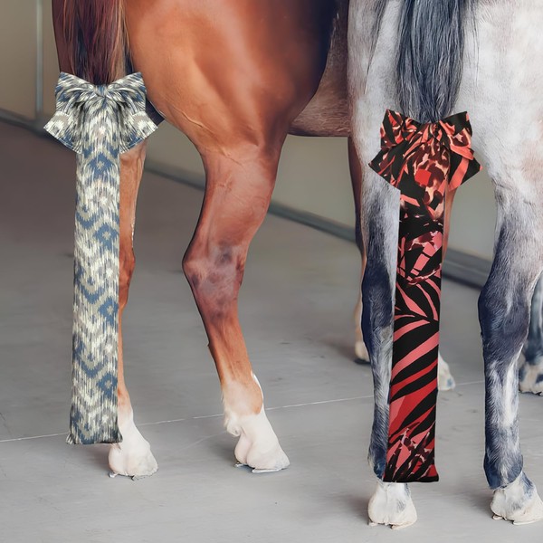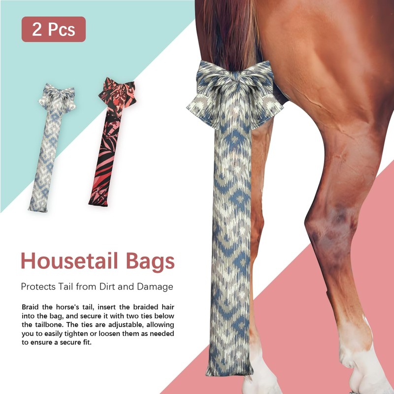 - BREATHABLE AND HIGH STRETCH MATERIAL: 85% polyester, 15% spandex. This tail bag is made of smooth stretch fabric quick-drying fabric with unique design and pattern, which is not only comfortable to wear, but also keeps your horse's tail clean, tangle-free, and long-lasting in any weather conditions.