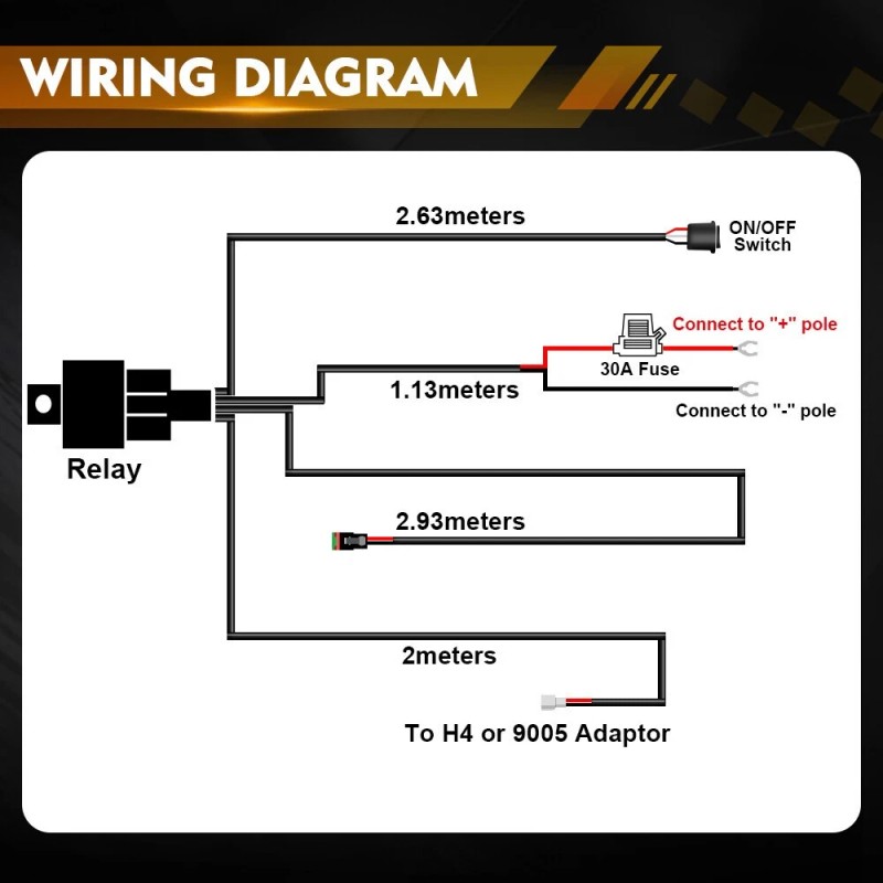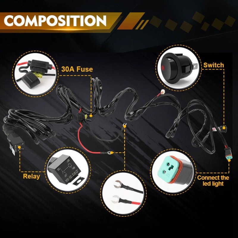 40A Power Relay and with inline Blade Fuse for multiple safety protection.It is 1 lead that with 1 lights output connection,it can hook with 1 heavy duty off road led light bar below 200w or two small light pod/cube.