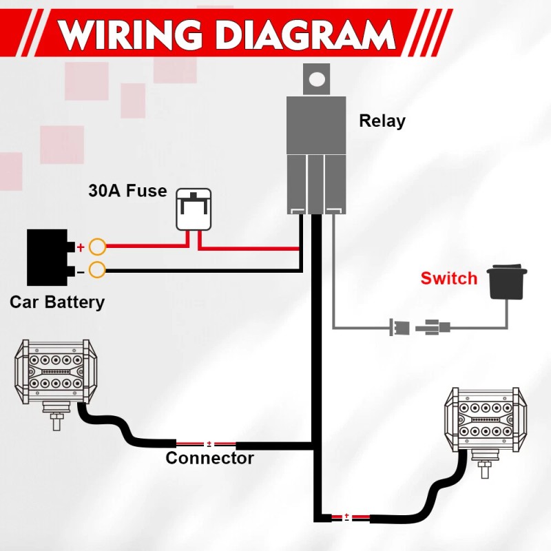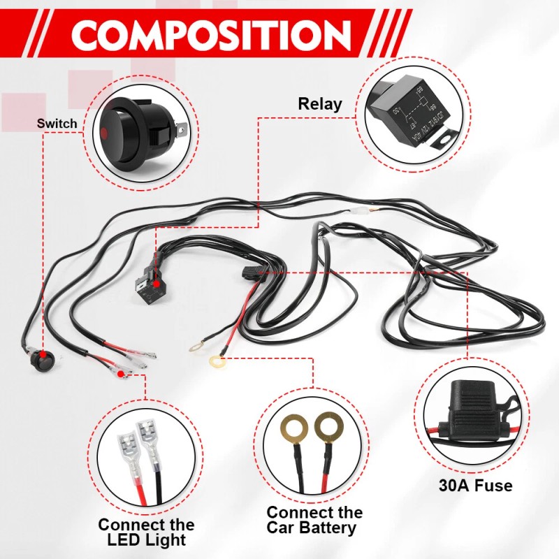 - Two Leads: Convenient to hook up 2 pcs of work lights, light bars, driving lights or fog lamps less than 180W for your off-road vehicles.