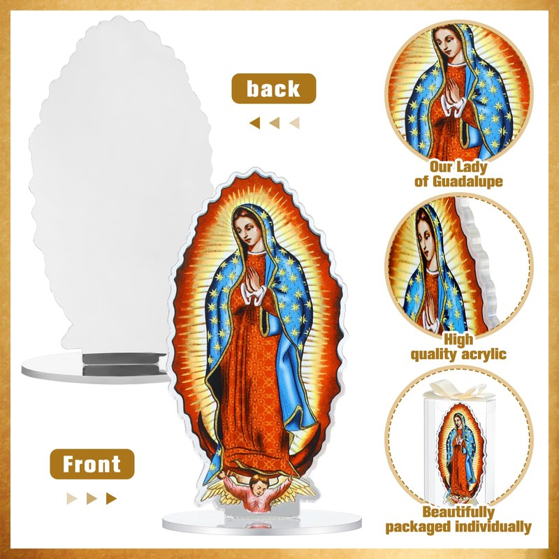 - Material: crafted from acrylic, these 12 pieces of Our Lady of Guadalupe statues exude elegance; Each one stands at 4.72 inches in height, adding a delicate touch of faith to any space; Whether as a centerpiece or displayed on a bookshelf, these Virgin de Guadalupe statues are perfect for any religious setting
