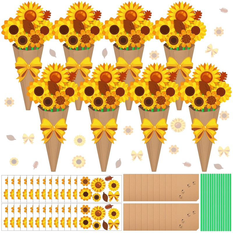 - Fall Flower Bouquet Kit: our flower bouquet craft kit includes everything you need to make 24 beautiful craft bouquets; The kit includes 24 sheets of brown kraft paper, 24 sheets of flower cardstock, and 100 grass green plastic straws; Enough for you to create your own beautiful bouquet before the autumn