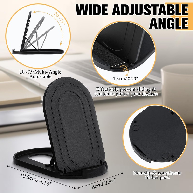- Lightweight and Foldable: adjustable cell phone stand for desk measure about 4.13 x 2.36 inches/ 10.5 x 6 cm, portable and compact, easy and convenient you carry, suitable for desks, travel, home, kitchen, and office phone mounts