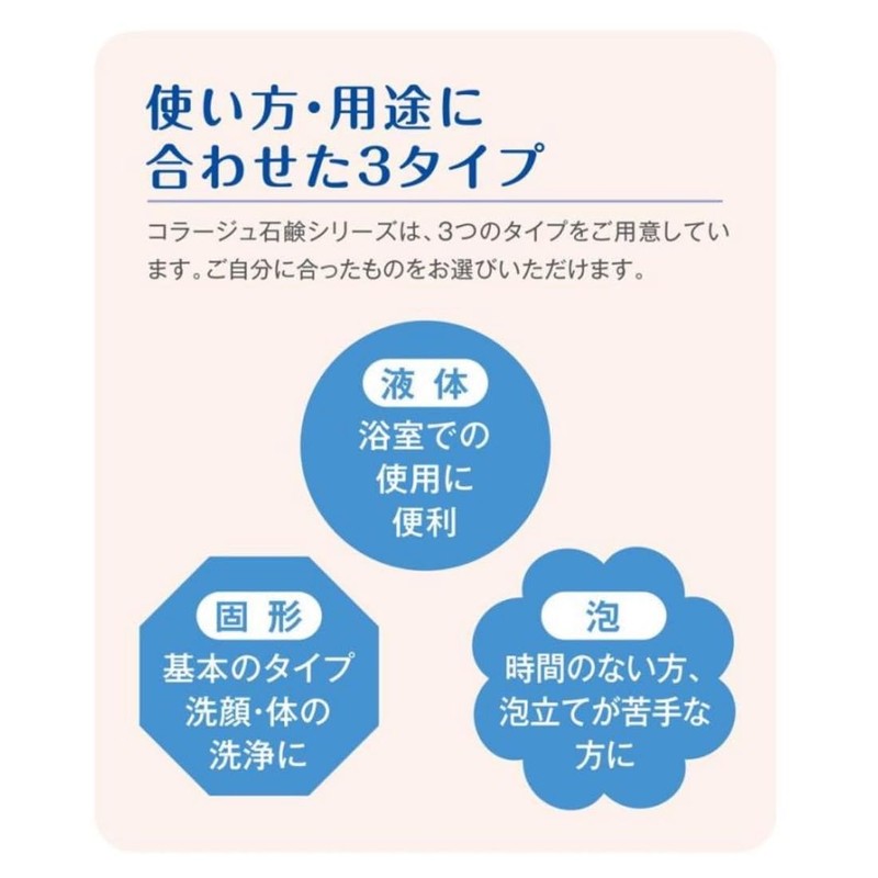 - Collage soap is available in 3 types for oily skin, sensitive skin, and dry skin