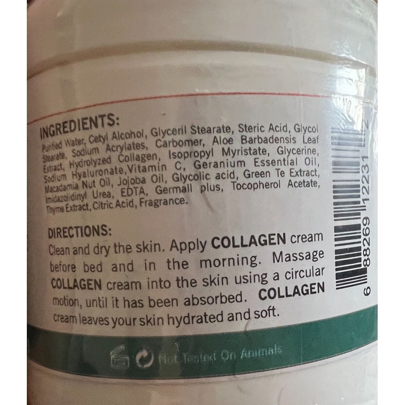 • Features: Acid HYALURONIC, All Natural Ingredients, Aloe vera, COLLAGEN, ELASTINE, VITAMIN E, original collagen elastine
