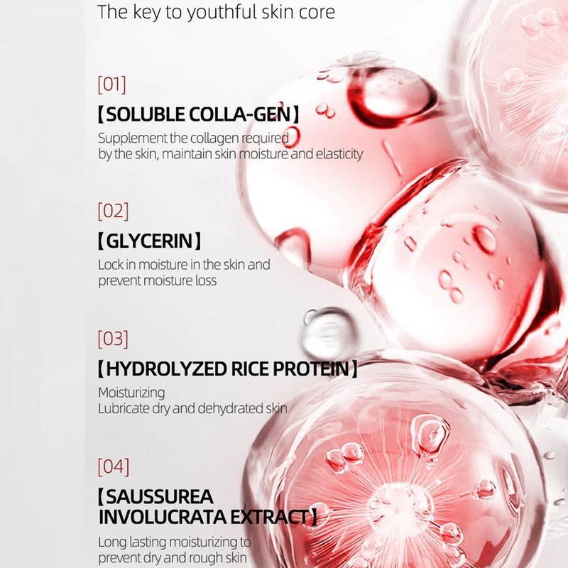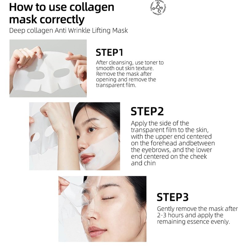 - Deep Hydration & Plumping Enriched with glycerin and soluble collagen, this deep collagen mask delivers intense moisture to plump fine lines and boost skin elasticity, leaving skin visibly smoother and firmer.