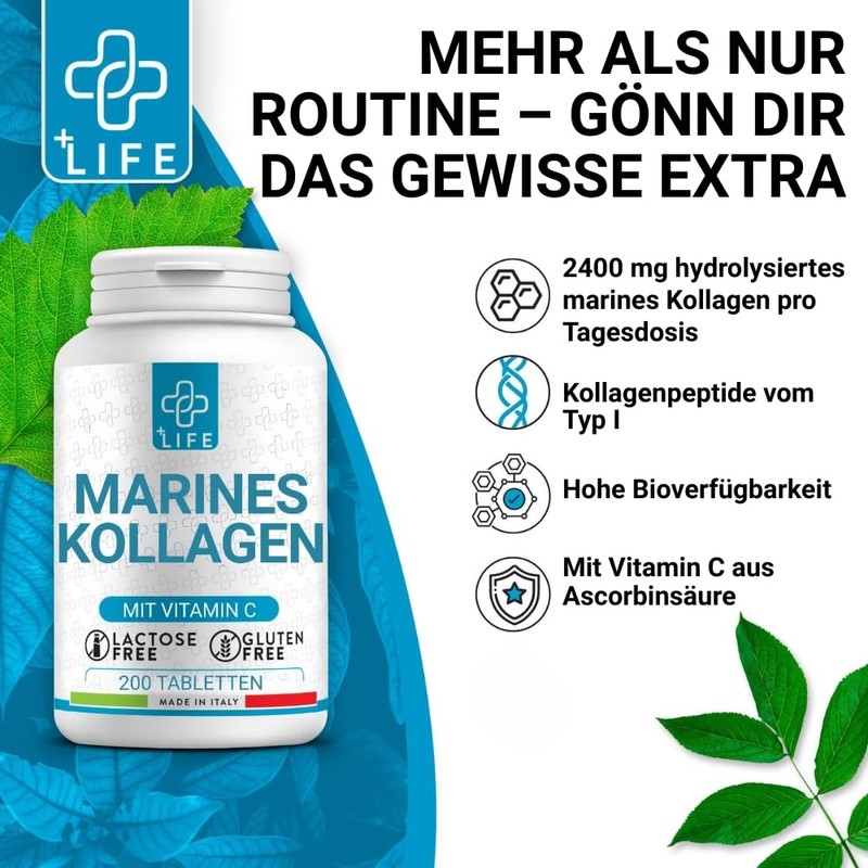 - Collagen Marine high dose - for your daily routine. High-dose tablets with 2400 mg hydrolyzed sea collagen - ideal for anyone who wants to consciously support their well-being