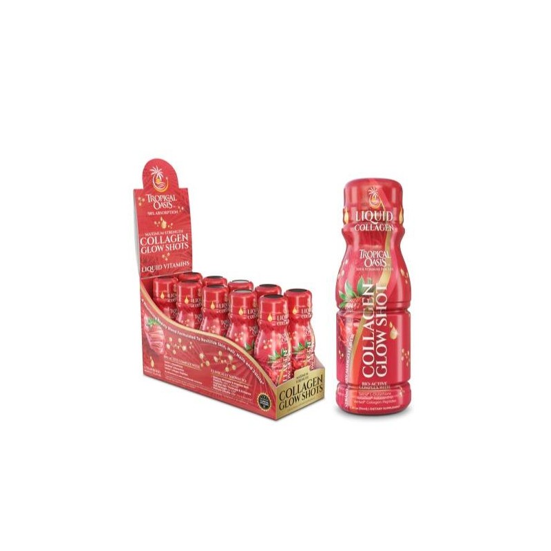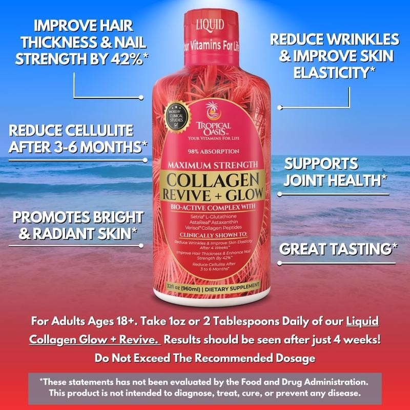 Collagen Revive + Glow Liquid Supplement by Tropical Oasis - Supports Skin Elasticity, Hydration, Hair & Nails | Non-GMO, Edible - 16 fl oz (473 ml) Healthcare Beauty:_Collagen Glow Shots (10 pack)