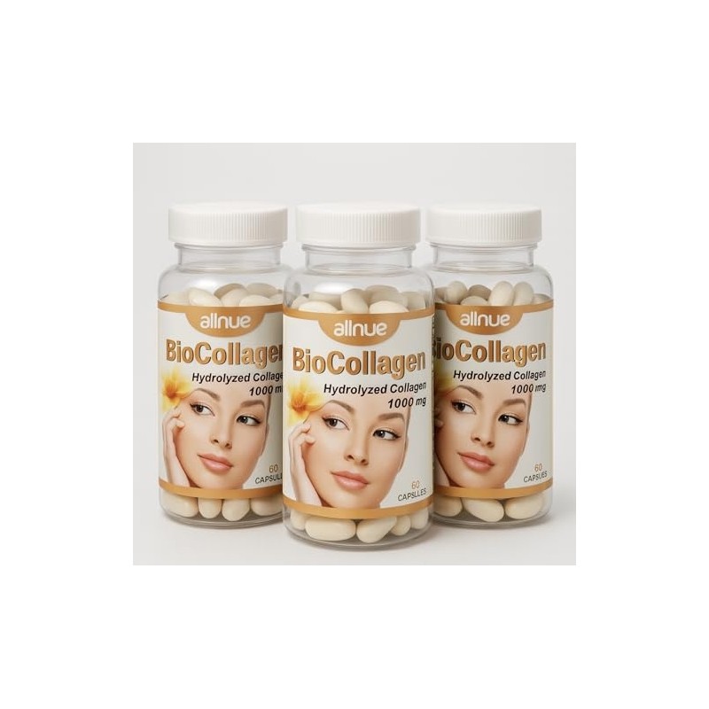Collagen with Vitamin C and Biotin, Skin, Hair and Nails Supplement, Includes Antioxidants, 180 Capsules de 1000 mg 3 Bottles. Bio Collagen All Natural