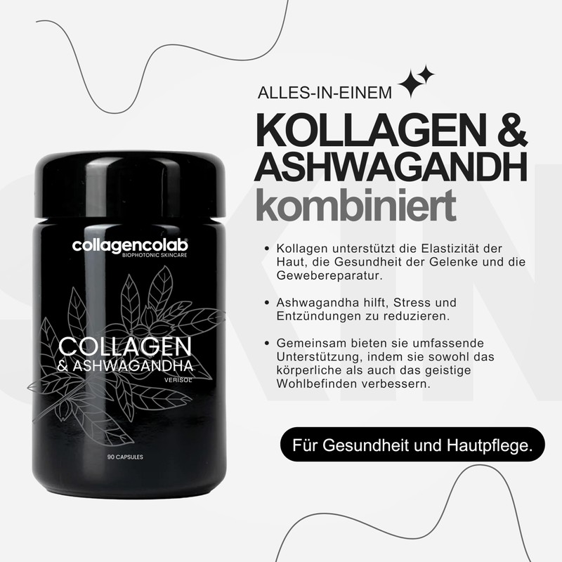 COLLAGENCOLAB® High Dose Verisol® Collagen Peptide Capsules with Ashwagandha, Biotin, Vitamin C, Hyaluronic Acid, Piperine, Mron Glass, Skin, Hair & Nails, Collagen Complex, Laboratory Tested